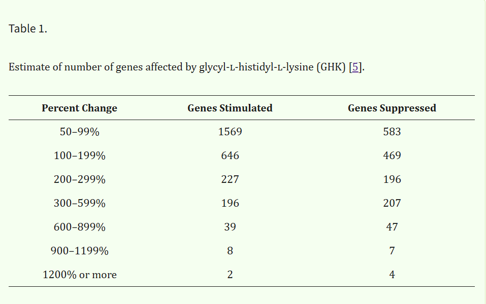 GHk-Cu likely exhibits its effects through its ability to bind copper (II) ions and modulate gene expression. According to a study conducted by Kimoto et al., GHk-Cu modulates the expression of over 3,000 genes.