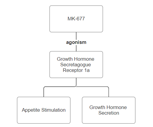 MK-677 works by mimicking a hormone known as ghrelin - often referred to as the "hunger hormone". By agonizing the ghrelin receptors (specifically the GHSR-1a [1]), MK-677 also potentiates the release of endogenous (originating in the body) growth hormone in a pulsatile manner.